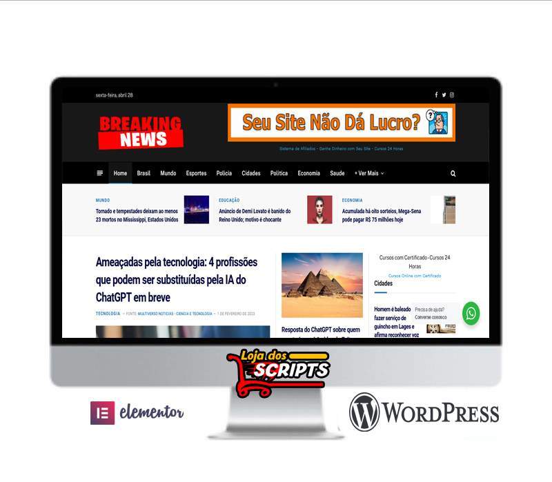Super lançamento do portal de noticias super completo e bem moderno , com um mega espaço para anúncios tanto de imagens quanto de anúncios ADS, com instalador automático e suporte durante o processo de instalação, e ainda acompanha vídeo aula passo a passo de como instalar, seu script.